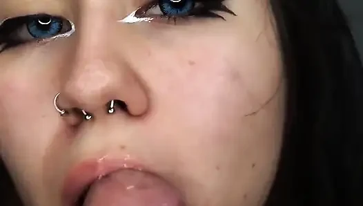 Skinny Naughty Gags on Cock and Licks Her Ass